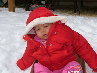 We did take the twins out in the backyard yesterday. We bundled them up in layers and their winter coats which are too big. We sat them in box lids so they didn't get wet. They looked like little red penguins. Neither of them knew what to do. They looked around and didn't seem too impressed. I know that if it snows next year, things will be completely different. At one point Brooklyn bent over to look at the snow and fell face first into the snow. Luckily, the jacket kept her face from getting covered. Both of the babies have been healthy - which is a blessing. They will go in next week for their 4th Synagis shot and then they will get their 1 year vaccines the following week. Yes, 1 year!!! I cannot believe that they are about to be 1. This year has flown by and I still find myself looking at them and thinking - these are my children. I never imagined, when I stood beside their isolets in the hospital, that they would be this healthy and strong - God is so GOOD!!!